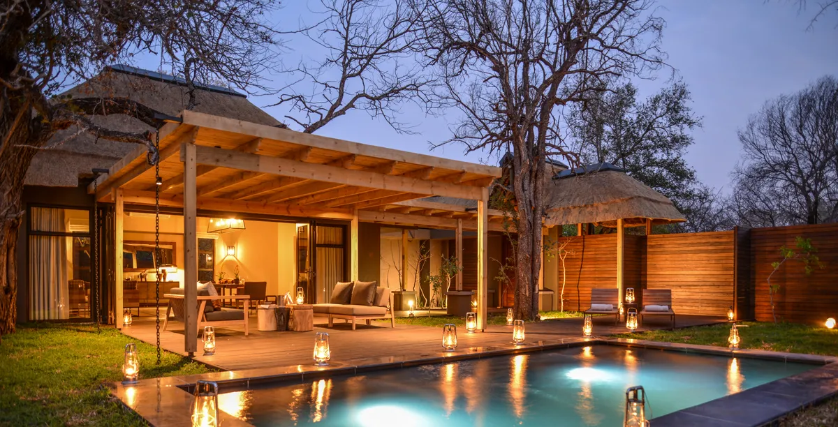 Lion Sands Hi’Nkweni Villa is an exclusive & private piece of paradise in the Kruger National Parks’ Tinga Concession & overlooks the Sabie River.