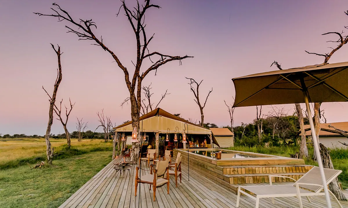 This luxury safari camp with beautiful, tented suites overlooks a busy waterhole with photographic hide - after which the camp has been named. Here guests can get exceptionally close to the various animals coming down to drink.